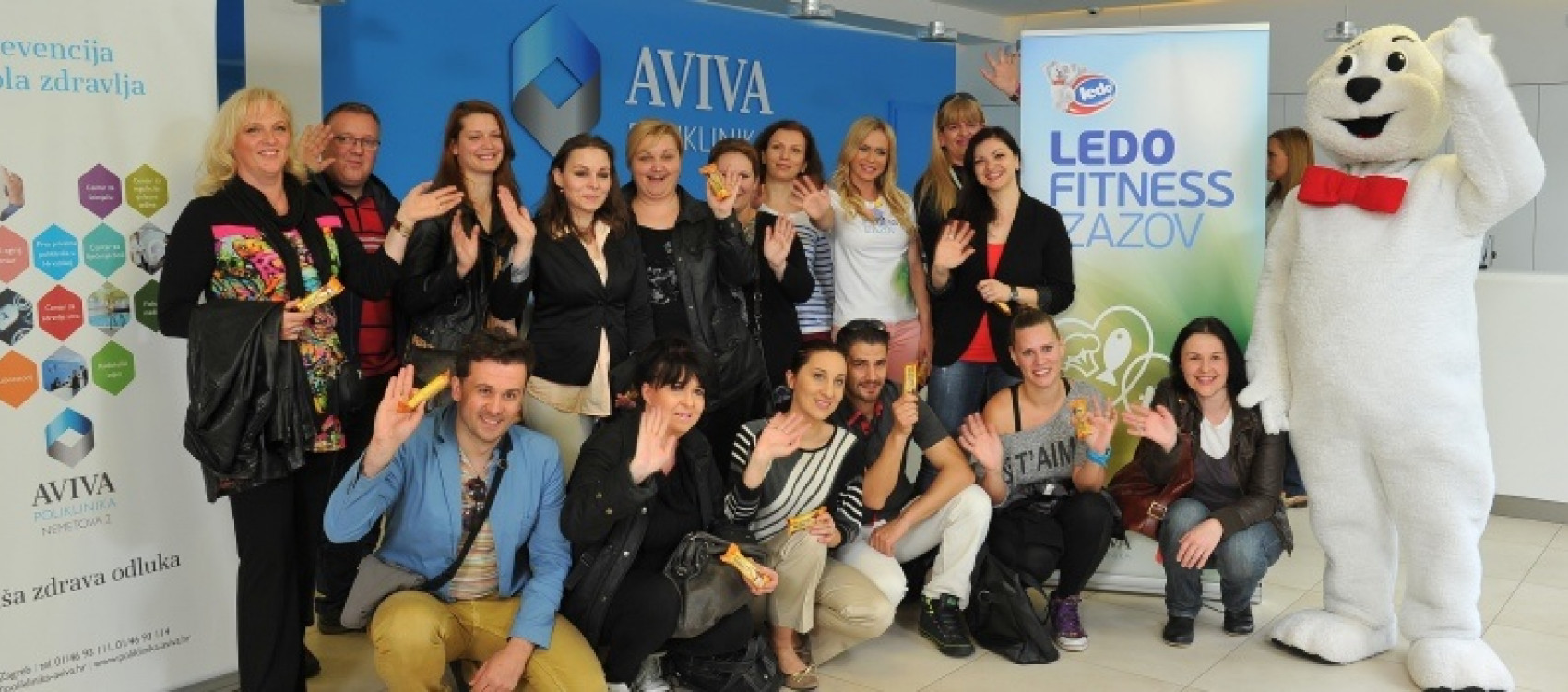 Potencijalni polaznici Ledo fitness izazova okupili su se u poliklinici AVIVA gdje ih je dočekao Ledo Medo i ambasadorica projekta, televizijska voditeljica i fitness instruktorica Renata Sopek.