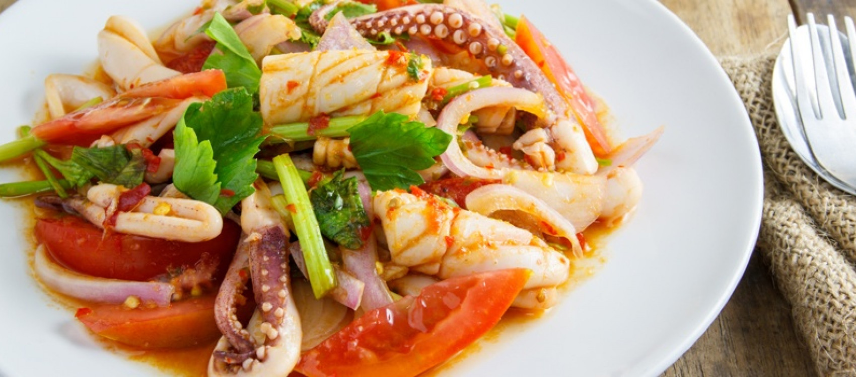 Iako plodovi mora mogu samostalno činiti salatu uz dodatak, primjerice ljubičastog luka i začinjeni umakom od octa i maslinova ulja, obogatimo li salatu takozvanom "bazom" - različitim škrobastim povrćem, mahunarkama ili žitaricama, dobit ćemo konkretno izdašno jelo.