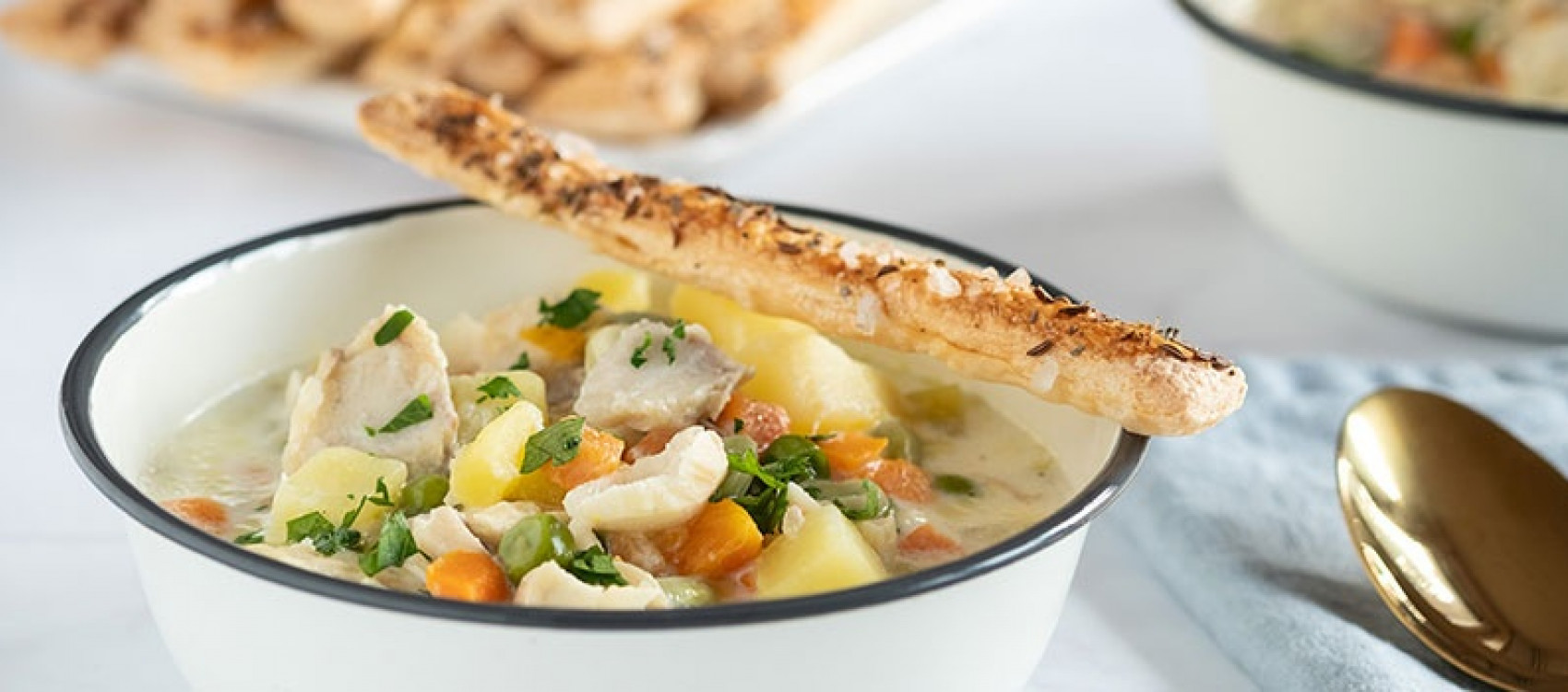 Recept: Gusta juha od bakalara i povrća s prutićima od lisnatog tijesta