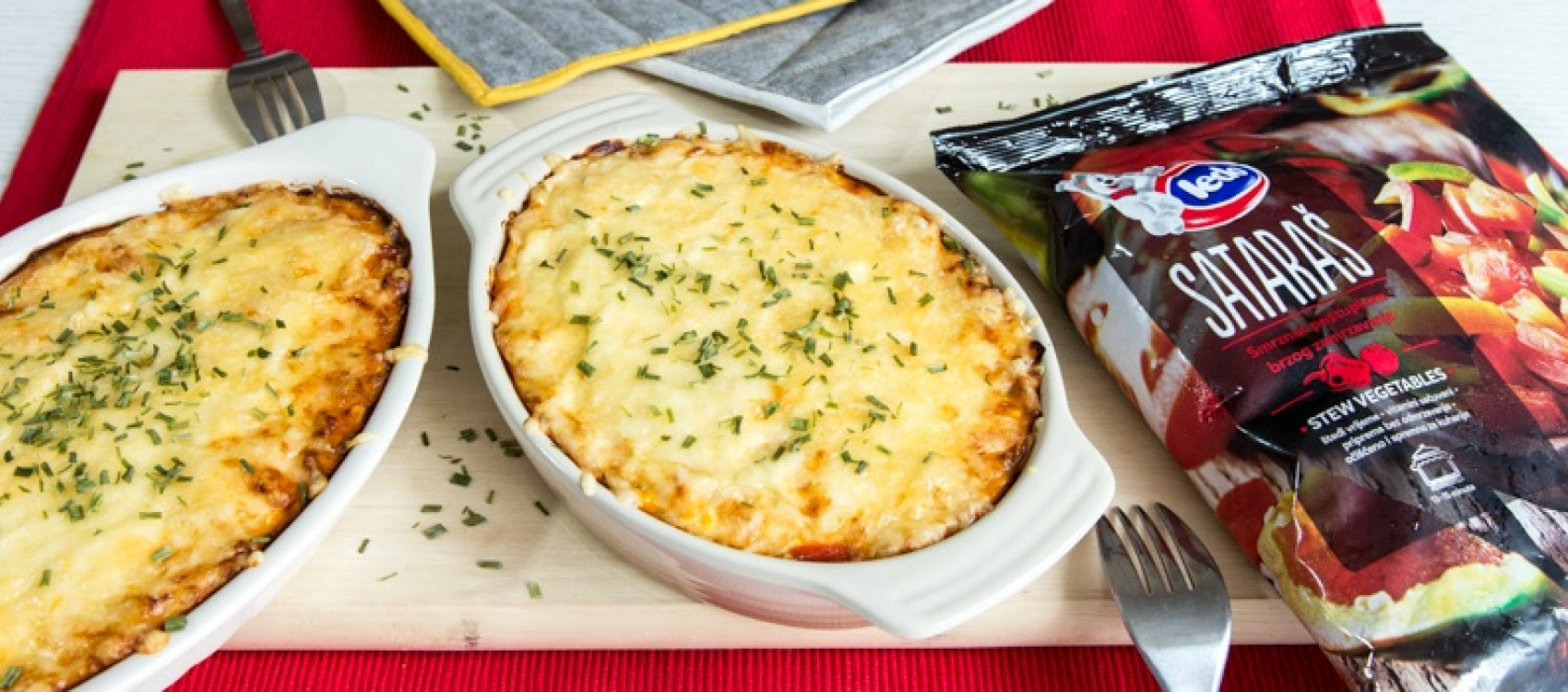 Zapečeni sataraš možete pripremiti u velikom pekaču pa ga rezati ili se odlučiti za individualne porcije u simpatičnim malim keramičkim ili glinenim posudicama.