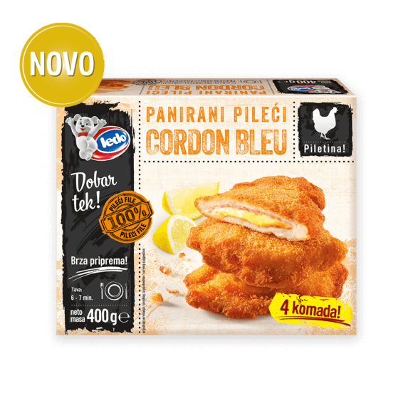 Poznato jelo Cordon bleu ukusan je brzo smrznuti proizvod od pilećeg mesa. Ukusno pileće meso punjeno je sirom i šunkom koji mu daju poseban okus. Namijenjen je svim generacijama željnih ukusnog obroka.