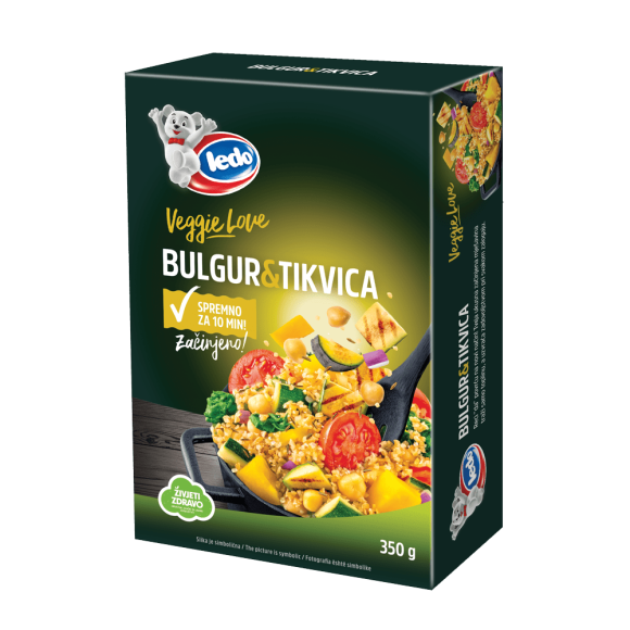 Ledo mješavina s bugurom i tikvicom je unaprijed začinjena mješavina spremna za kuhanje. Nudi kombinaciju raznolikog povrća (tikvica, špinat, rajčica, slanutak, mrkva, luk) i bulgur žitarice koja će obogatiti svako jelo. Brza i jednostavna priprema vam omogućuje ukusan i hranjiv obrok u svega 10 minuta.