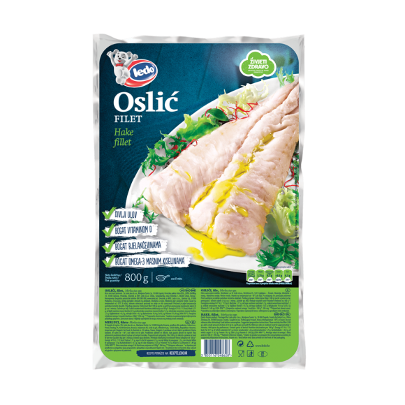 Ledo Oslić filet pripada liniji proizvoda ribljih fileta od 100 % ribljeg mesa. Ledo Oslić dolazi iz divljeg ulova, izvor je vitamina D i bogat je bjelančevinama te omega 3 masnim kiselinama.