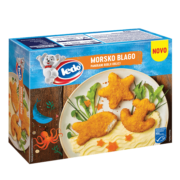 Morsko blago inovativan je panirani proizvod posebno osmišljen za djecu. Ovaj ukusni snack u zabavnim morskim oblicima poput ribica, zvjezdica i sidra najmlađima je neodoljiv. Priprema je brza i jednostavna, a rezultat su hrskavi zalogaji, savršeni kao međuobrok ili glavno jelo uz prilog. Morsko blago bogato je bjelančevinama i ne sadrži bojila, arome ni pojačivače okusa, čime jamči prirodan okus i kvalitetu te je ponosni nositelj oznake MSC, što potvrđuje da riba korištena u ovom proizvodu dolazi iz održivih izvora.