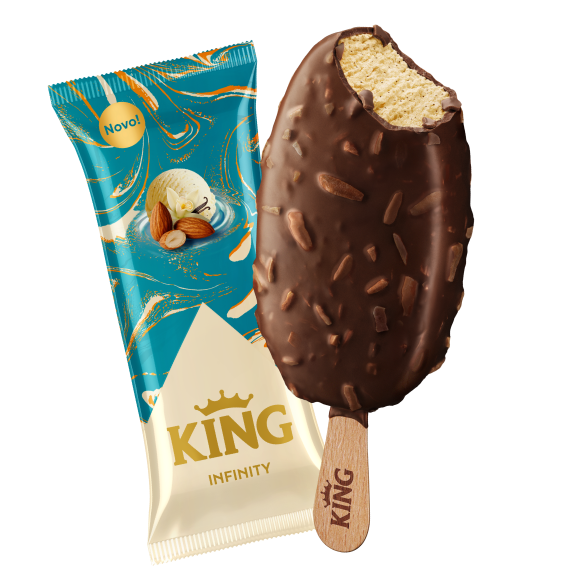 Za ljubitelje bezvremenskih slastica stiže novi KING sladoled na štapiću. Uz KING Infinity uživajte u poznatom okusu koji traje i nastavlja tradiciju omiljenog KING užitka.