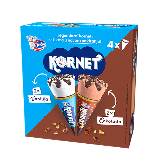 Najpoznatiji okusi legendarnih korneta od sada su u multipacku od četiri sladoleda. Ovo praktično pakiranje sadrži Ledove najpopularnije sladolede u kornetu ‒ Kornet vanilija i Kornet čokolada ‒ stvorene za dijeljenje i povezivanje s najdražima u svakom trenutku. Požurite po novi multipack i uživajte u omiljenim okusima kad god i s kim god poželite!