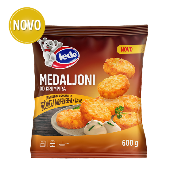Tava (200g proizvoda): U potpunosti uronite zamrznuti proizvod u vruće ulje na temperaturi od 175°C i pržite 4-5 minuta, dok ne dobije zlatnožutu boju i postane hrskav. Pazite da ne prepržite medaljone! Izvadite prženi proizvod iz ulja i odložite ga na kuhinjski ubrus kako biste uklonili višak masnoće. Prilagodite količinu ulja i vrijeme prženja količini proizvoda koju pripremate.
