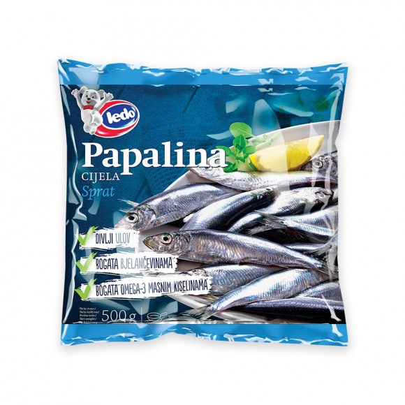 Ledo Papalina dolazi iz divljeg ulova, bogata je bjelančevinama i omega 3 masnim kiselinama. Papalina je vrlo popularna u mediteranskoj kuhinji. Može se jesti cijela s kostima pri čemu se u organizam unosi dodatna količina kalcija. Ledo papalina dostupna je tijekom cijele godine i vrlo je jednostavna za pripremu. Namijenjena je ljubiteljima male, sitne ribe te se odlično uklapa u ribarske večeri i zabave.
