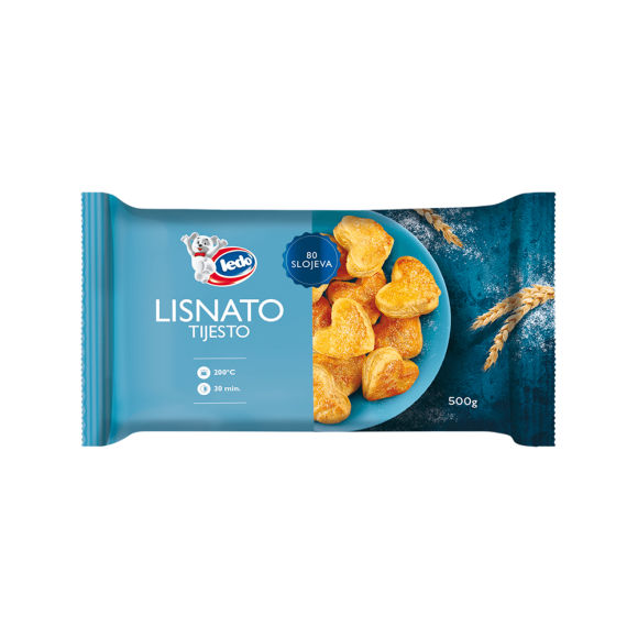 Željeli smo naše vjerne potrošače nagraditi još jednom dodatnom koristi – POKLONITI IM VRIJEME – tako da značajno smanjimo vrijeme odmrzavanja Ledo Lisnatog Tijesta sa 120 minuta na sada potrebnih 80 minuta. Zadržana je jednaka receptura kao i broj slojeva razlistavanja tako da garantiramo poznati okus i hrskavost.