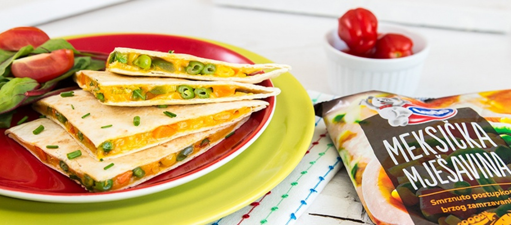 Za pripremu izdašnih quesadilla odaberite Ledo Meksičku mješavinu povrća koja se sastoji od kukuruza šećerca, mrkve, graška, zelene mahune te crvene i zelene paprike. Nasjeckano povrće će vam uvelike skratiti vrijeme pripreme.